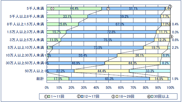 | (都道府県・指定都市:内訳別平均) 定例会:13.0回 臨時会:4.1回 委員協議会等:8.5回 総計平均:25.5回 |