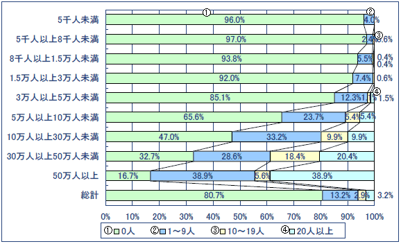 | 0人 | 1~9人 | 10~19人 | 20人以上 | |
