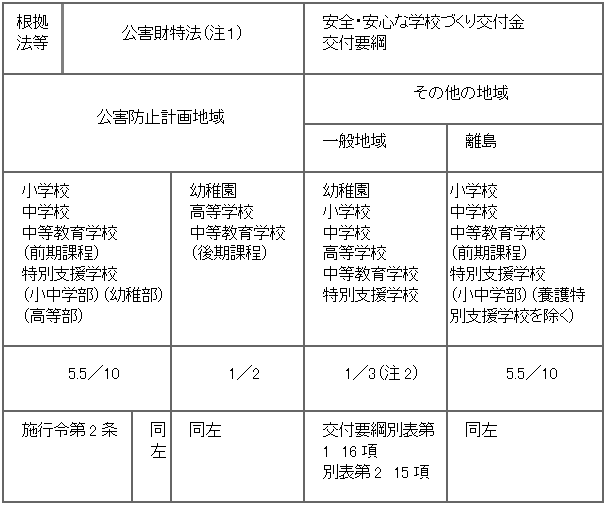 | 小学校、中学校、中等教育学校の前期課程 | 改築 | 校舎 | 1/3 | 1/2 | 1/2