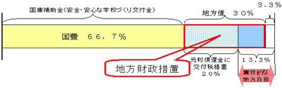 学校施設は、児童生徒等の学習・生活の場であり、地震等の災害発生時には地域住民の応急避難場所としての役割も果たすことから、その安全性を確保することは極めて重要であることから、地方公共団体が学校施設の整備をするに当たり、その実施に要する経費の一部を、国が交付金として地方公共団体へ交付するものです。