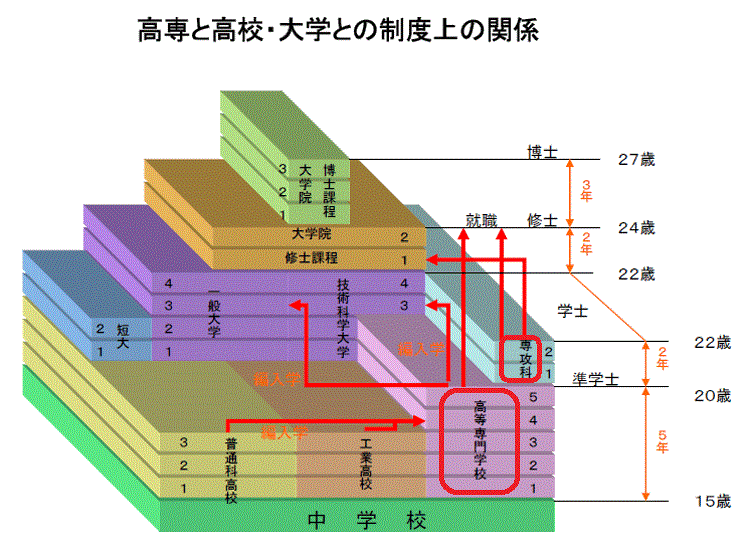 高等専門学校は実践的・創造的技術者を養成することを目的とした5年一貫の高等教育機関です。
