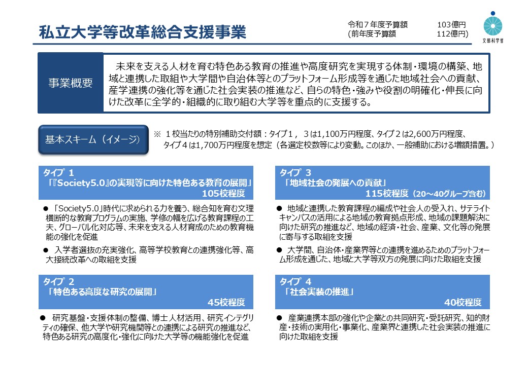 (参考:令和6年度私立大学等改革総合支援事業について)