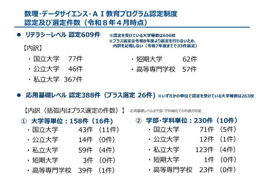 ※複数学部等で応用基礎レベル(学部・学科単位)の認定を受け、ページ内に複数学部等の情報を掲載しているものがある。学部ごとに別のページを設けているものは、学部名を記載している。