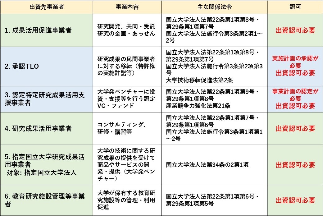 ※下記1~6のいずれか類型を複合した事業への出資認可申請も可能です。 ※2、3の事業は事前に計画の承認または認定が必要です。