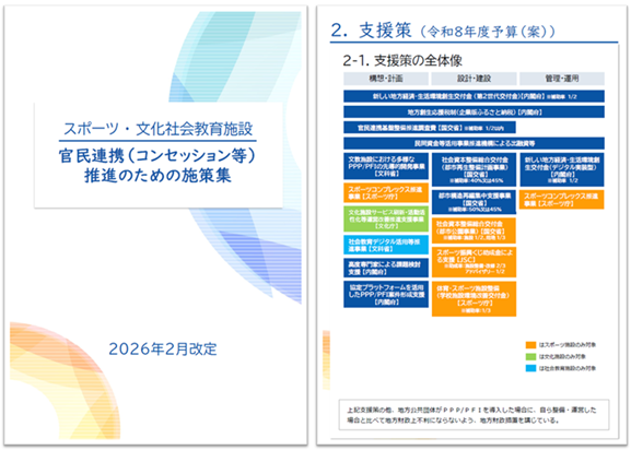 このことを踏まえ、文部科学省は、地方公共団体におけるコンセッション方式の検討が進むように、具体的な支援策や、取組事例などを紹介した施策集を作成しました。