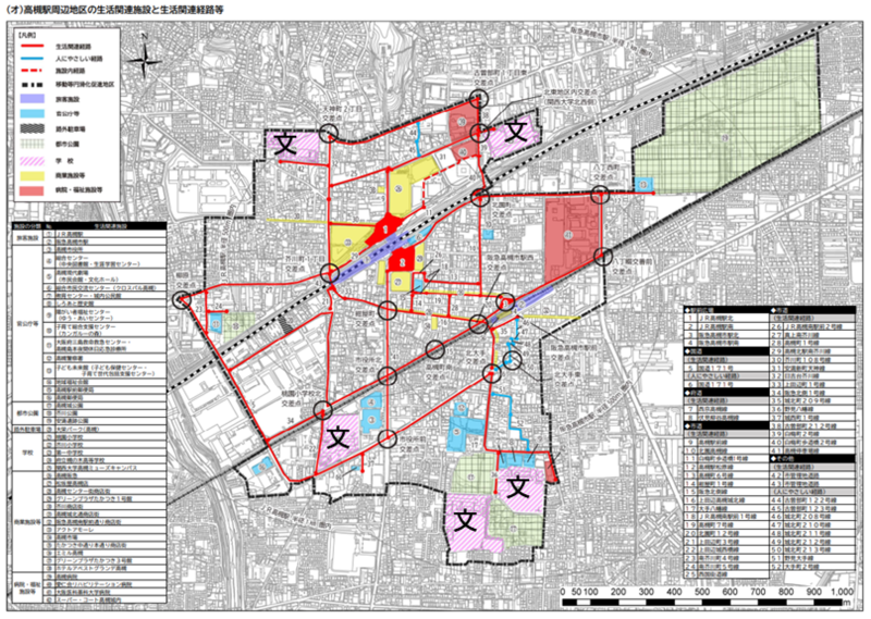 高槻駅周辺地区の生活関連施設と生活関連経路 (高槻市バリアフリー基本構想より)