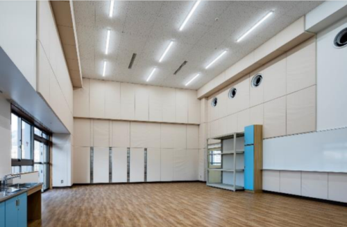 - 支援学校の体育館ステージは、高さを抑え、スロープでアクセスできるように計画している。