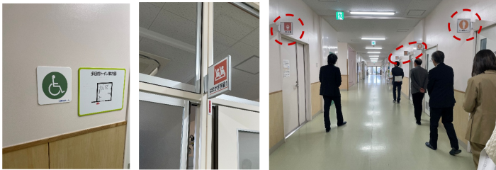 - 部屋の案内表示には、文字に加え、絵や図を用い、誰が見ても何の部屋か分かるようにしている。