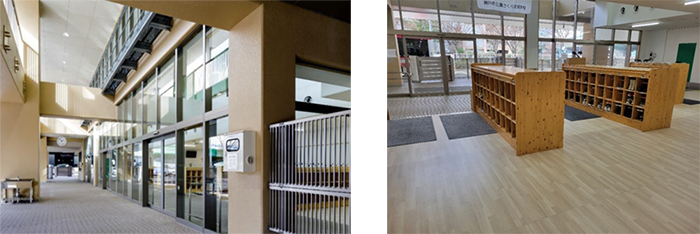 - 車いす使用者などに配慮し、出入口は段差のないつくりとなっている。