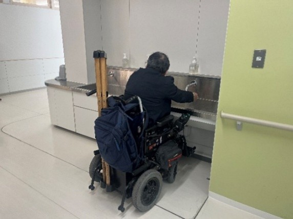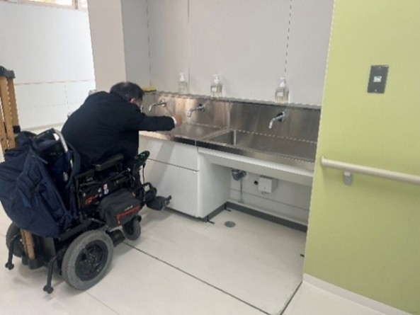 手洗い場を利用する際、車いすでは蛇口に手が届かないことも多くあります。
