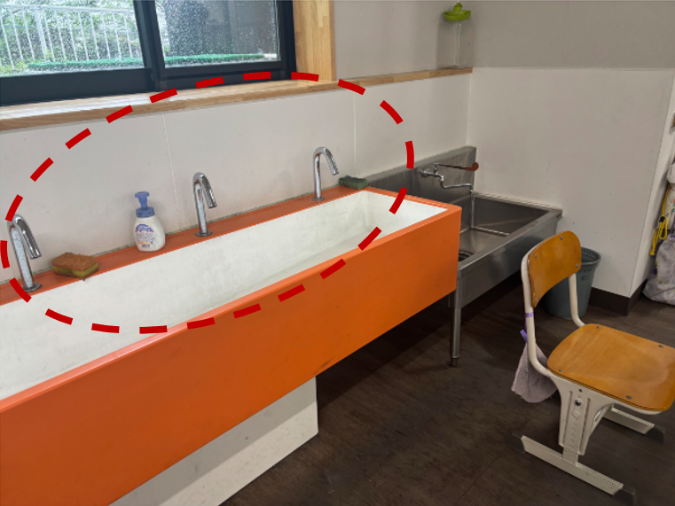 障害のある児童生徒等が、支障なく安心して学校生活を送るためには、手洗い場の足元にクリアランスを設けることや、水栓に操作しやすいレバー式を採用する等、誰もが利用しやすい手洗い場の整備も重要です。