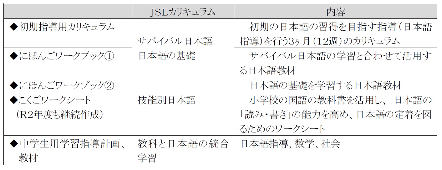 - 「外国人児童生徒教育カリキュラム開発推進会議」を設置し、「特別の教育課程」において使用する教材等について検討を行った。