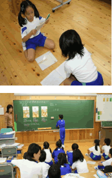 具体物や図などを使って考え,2人組で説明するなどの算数的活動を設定したことで,自信を持って説明できるようになってきている。また,説明の型を統一して説明させたことも効果的であった。「どうやって求めるか分からなかったけど,すっきりした。みんなの考え方もすごいな。(5年)」という声も聞かれ,互いの考えを理解しようとする態度も見られるようになった。