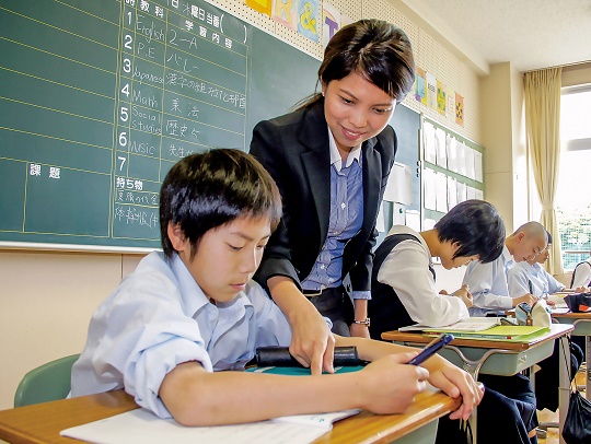 A:授業のアシスタント教員としての役割から、外国人教員単独の授業が可能になることにより、英語授業はもとより学級担任の立場で、より主体的に取り組む姿勢が身に付く。