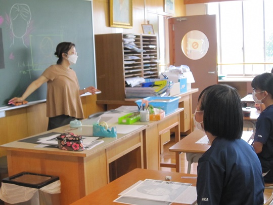 A:免外で美術を担当しているため、版画の指導が難しかった。同じ地区内で免外の教員のいる学校で教えている当該講師にお願いし、3校をかけもちで教えていただいている。