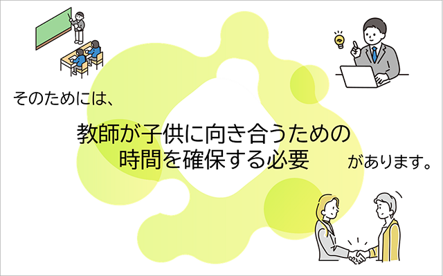 教育委員会・学校と共に、教師が教師でなければできないことに集中できるよう、業務の適正化を推進します。