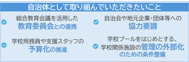 教育委員会等のみならず、首長部局においても情報発信や協力要請をお願いします。