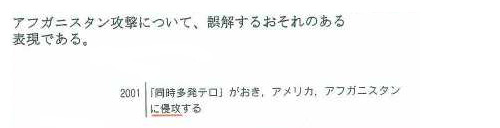 アフガニスタン攻撃について、誤解するおそれのある表現である。