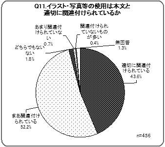 イラスト・写真等の分量については、「適切な分量になっている(84.0パーセント)」が最も多い結果となっている。