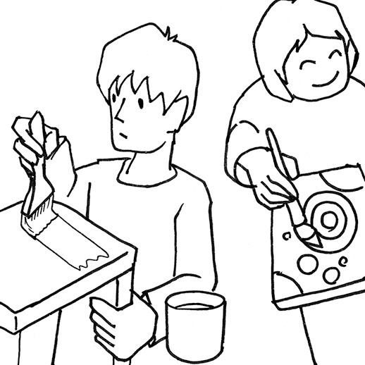 色を付けたいときは、水彩絵の具や木工用の絵の具などで付けることができます。ニスを塗って色止めすることもできます。