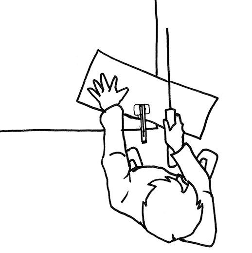 友達に押さえてもらう、自分の手や足で押さえる、万力やクランプで固定する、箱型のいすの止め部分にひっかけるなどします。