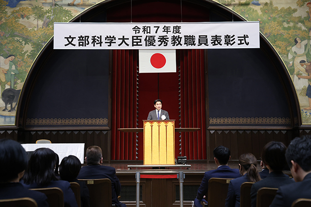 12月2日、松本大臣は、令和7年度医学教育等関係業務功労者表彰式に出席し、国立、公立及び私立の大学において、医学・歯学に係る業務に関して顕著な功労のあった方々を表彰しました。