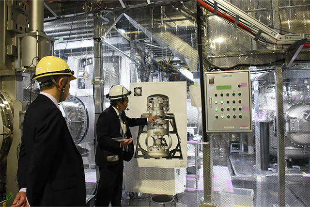 8月28日、盛山大臣は東京大学宇宙線研究所の神岡研究施設においてスーパーカミオカンデ、ハイパーカミオカンデの建設現場、そして、大型低温重力波望遠鏡 KAGRAを視察し、相原博昭東京大学理事・副学長や梶田隆章卓越教授など関係者と意見交換をしました。