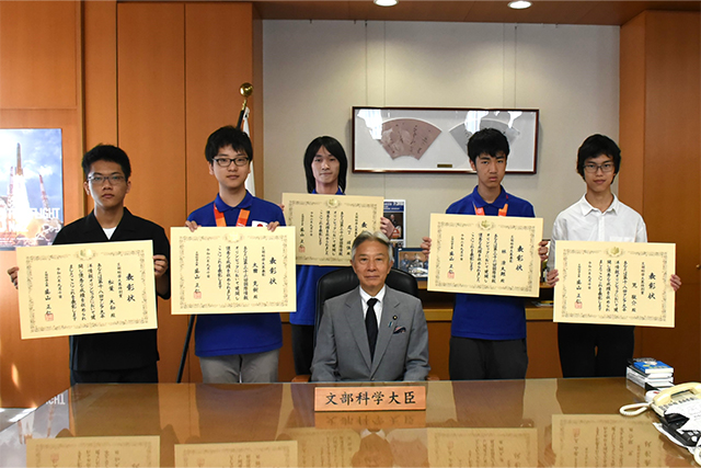 盛山大臣は、優秀な成績を収められた皆さんにお祝いの言葉を伝えるとともに、若い時の国際経験の重要性に触れながら、「様々な分野において、海外の同世代と競争、協調していってほしい」「好奇心をもって学び続け、世の中の未知なる出来事の解明に取り組んでほしい」と期待を伝えました。