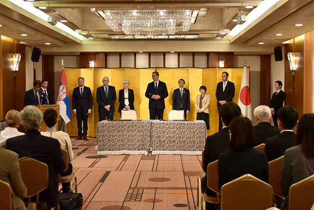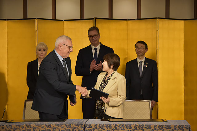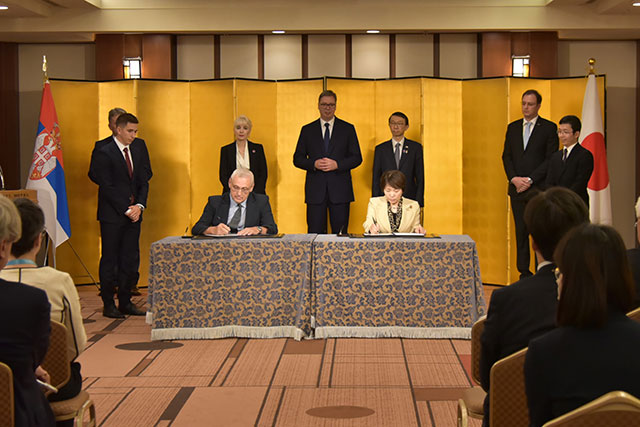 署名はセルビア共和国のアレクサンダル・ブチッチ大統領同席の下、あべ大臣とセルビア側はベラ・バリント科学・技術開発・イノベーション大臣が行いました。