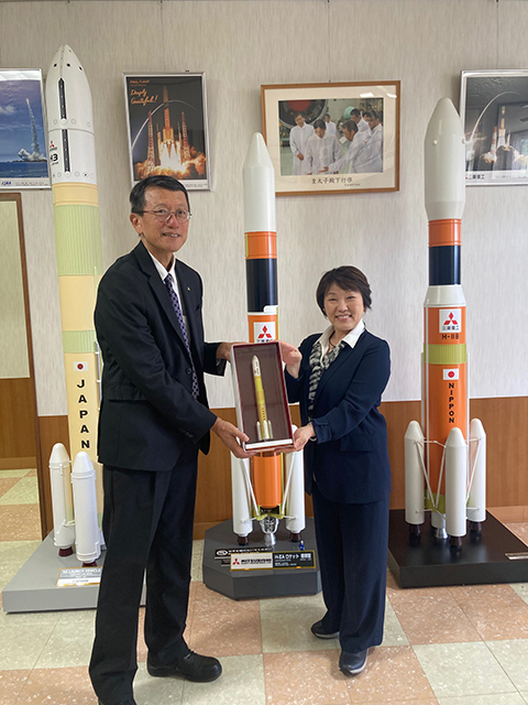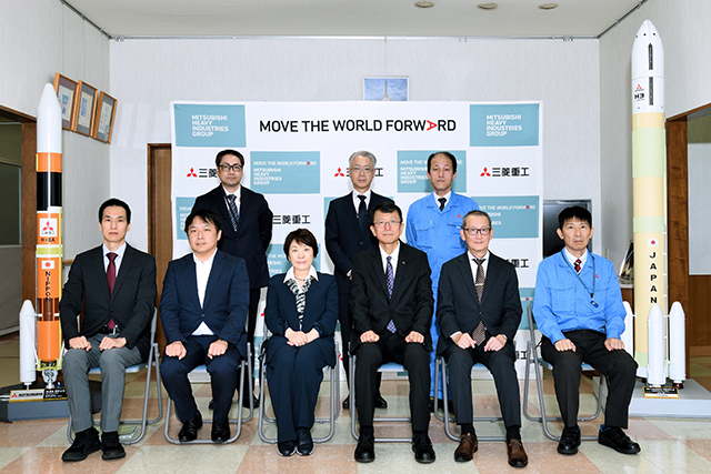 三菱重工業飛島工場では、H3ロケットや国際宇宙ステーションに物資を補給する「新型宇宙ステーション補給機(HTV‐X)」の製造過程を視察し、我が国の宇宙活動を担う基幹ロケット等の開発や今後の技術系人材確保、そのための官民連携の在り方などについて江口執行役員防衛・宇宙セグメント長等関係者と意見交換を行いました。