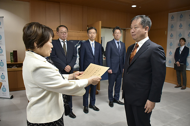 10月1日、スポーツ庁の新長官に河合純一氏が就任しました。就任にあたり、あべ大臣から辞令を手渡しました。