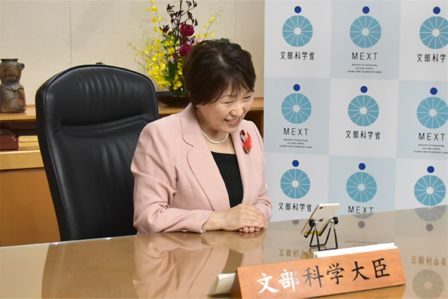 受賞を受けて、あべ大臣が坂口氏へ電話で御祝いの言葉を伝えるとともに、研究者を志す若者へメッセージや若手研究者の育成のために文部科学省に期待することを聞きました。そして、研究者を志す若者へメッセージや若手研究者の育成のために文部科学省に期待することを聞きました。
