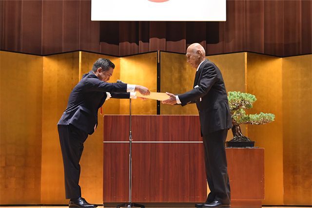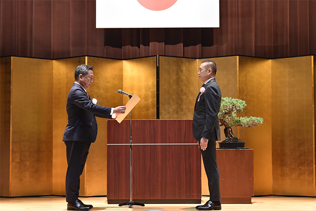 式では、「生涯スポーツ功労者」の総代として沖縄県の玉城 学様に、「生涯スポーツ優良団体」の総代として一般財団法人北海道ラグビーフットボール協会代表の津軽 敦志様に金城大臣政務官から表彰状を手渡しました。