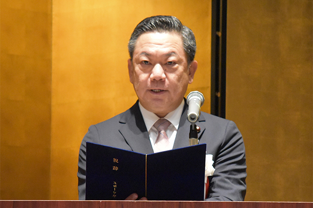 金城大臣政務官は挨拶で、「地域スポーツの振興にあたっては、地域で中核的な役割を果たされている皆様の存在が不可欠であり、皆様に寄せられる期待はますます大きくなっている。今後もスポーツの普及・発展に一層ご尽力いただきたい。本日は誠におめでとうございます。」と述べました。