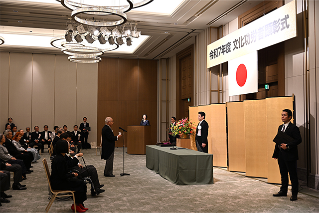 11月4日、令和7年度 文化功労者顕彰式を執り行い、今年ノーベル化学賞を受賞された北川進さんや声優の野沢雅子さんなど受賞者21名に松本大臣から顕彰状を授与しました。