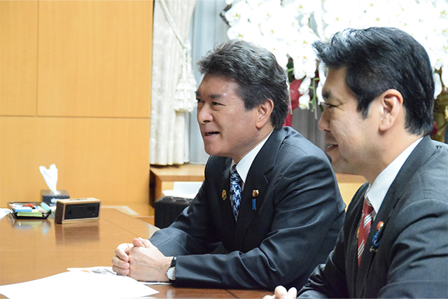 11月11日、松本大臣は、小林副大臣及び清水大臣政務官とともに、今年3月から8月まで国際宇宙ステーション(ISS)に滞在した大西卓哉宇宙飛行士の表敬訪問を受けました。