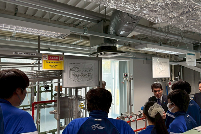 原子力機構「ふくいスマートデコミッショニング技術実証拠点(スマデコ)」では、福井県において原子力関連産業に係る地元企業の成長を支援する拠点として、レーザーを活用した技術開発や仮想空間での教育訓練等を行うことができる施設を視察し、廃止措置に向けた技術開発の必要性を改めて認識しました。