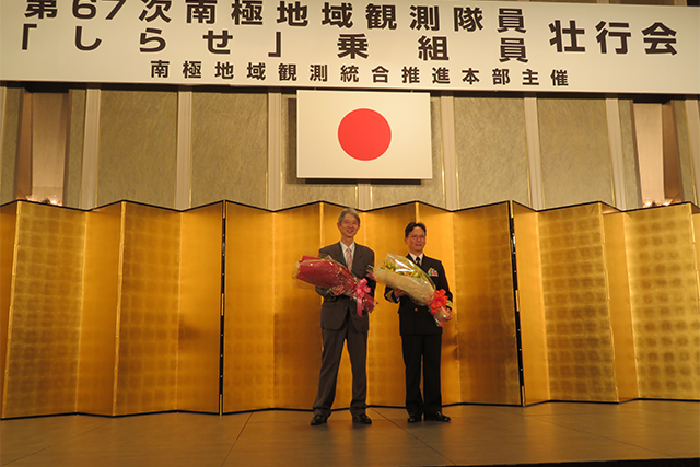 11月14日、小林副大臣と清水大臣政務官が第67次南極地域観測隊及び「しらせ」乗組員の壮行会に出席しました。