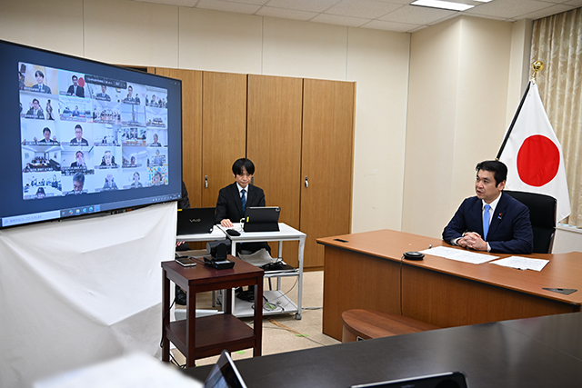 12月5日、高校から大学・大学院までを通した人材育成システム改革に向けて、高校を設置する都道府県及び市区町村教育委員会の教育長や産業振興部局の担当者等が一堂に会するオンライン会議を開催し、松本大臣が出席しました。