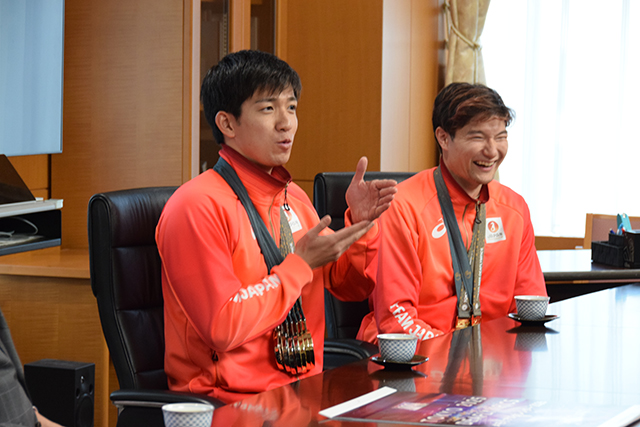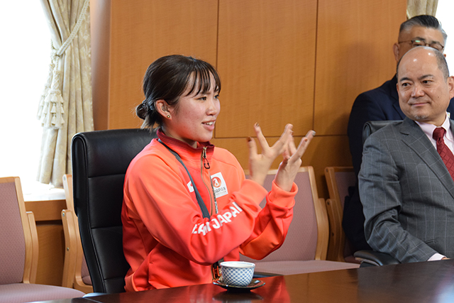 懇談では、選手の皆様から今大会についてお話を伺いました。自国開催という恵まれた競技環境の中で、大勢の観客による応援が大きな力になったこと、今大会が次世代への希望となるよう、聴覚障害を持つ子供たちのロールモデルになりたいという強い決意を胸に競技に臨んだことなど、大会を振り返っての率直な思いを語られました。