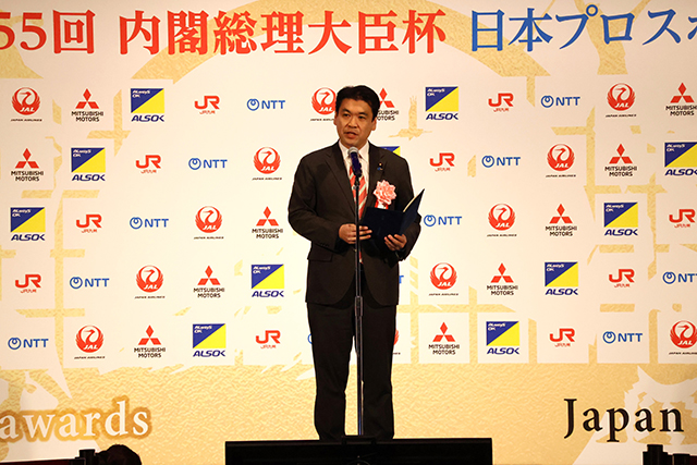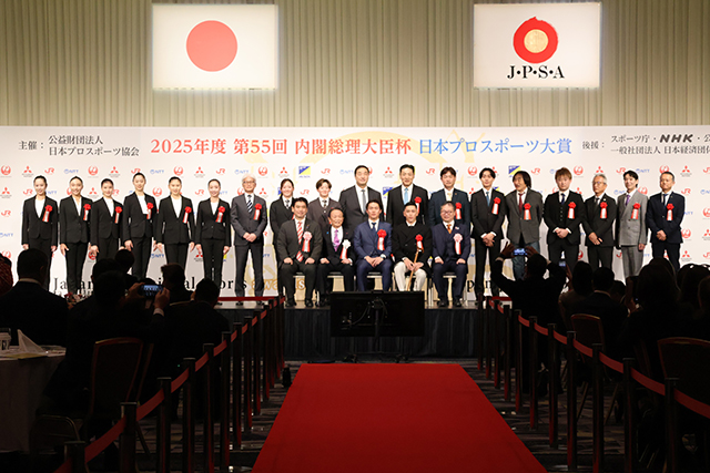 「皆様はそれぞれの分野で、優れた競技成績を残されただけでなく、競技の普及、団体の運営、後進の育成にも尽力され、日本のプロスポーツの発展に大きな足跡を刻まれました。長年にわたるその御功績に、深く感謝申し上げます。」