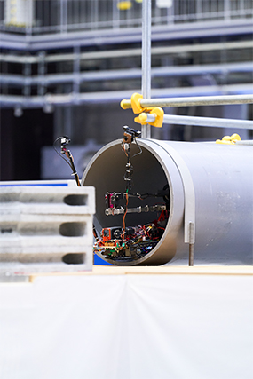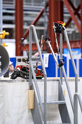 廃炉創造ロボコンには18チームが出場し、高専生たちは実際の廃炉現場を想定し、原子炉格納容器の底部に存在する対象物を回収するという課題に挑戦しました。