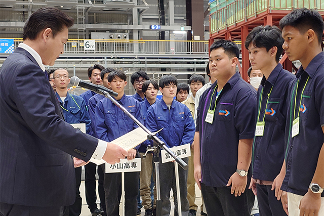 清水大臣政務官は表彰式において、最優秀賞である文部科学大臣賞を受賞されたKOSEN-KMITL(タイ高専)の学生に賞状とトロフィーを贈るとともに、出場した高専生に対し、「本ロボコンをきっかけに、今後も廃炉に関心を持つ若い方々が一人でも多く生まれることを強く期待しています」と激励しました。