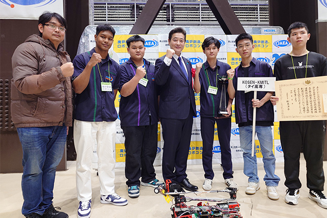 【文部科学大臣賞受賞チーム(KOSEN-KMITL(タイ高専))との記念撮影】