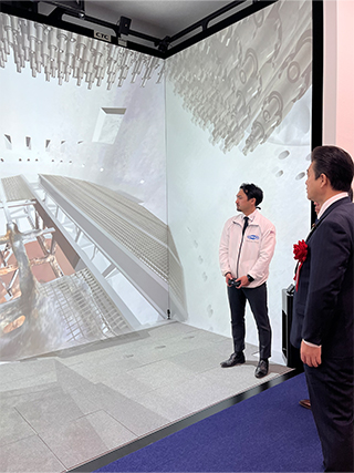 また、清水大臣政務官は楢葉遠隔技術開発センターを視察しました。原子炉建屋内の作業環境を再現したバーチャルリアリティシステムを体験し、廃炉作業の理解を深めました。