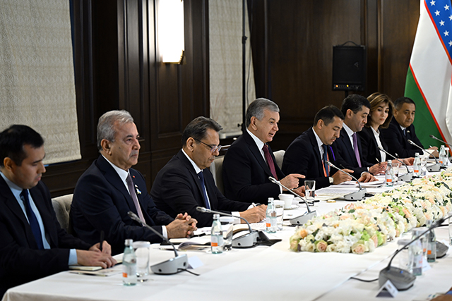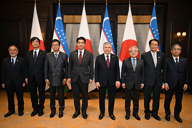 また、日本側出席者からは、ウズベキスタンとの教育・研究交流の実績や、同国に設置されている拠点における多様な活動について紹介があり、研究協力についても、地震防災科学、法学、乾燥地帯農業及び塩害対策等の分野における協力の更なる発展に向けた期待が示されました。ミルジヨーエフ大統領も、こうした各大学の取り組みを高く評価し、本会合は両国関係の更なる深化に資する有意義な機会となりました。