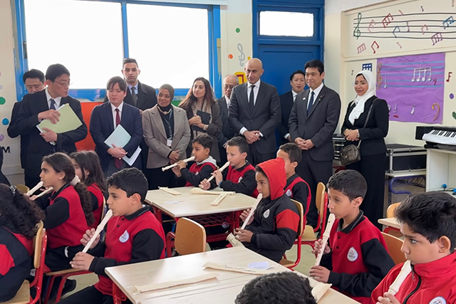 今回の滞在で松本大臣は、エジプト日本学校(EJS)や日本エジプト高専(EJ—KOSEN)、エジプト日本科学技術大学(E-JUST)カイロオフィス等も訪れました。EJSでは学活や掃除、日本企業と連携したリコーダーやプログラミングの授業等を視察するとともに、各訪問先で、関係者と意見交換を行いました。