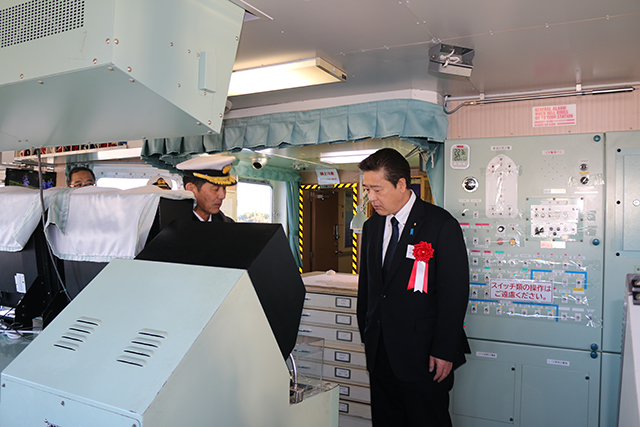 特別公開にて船内を見学する清水大臣政務官