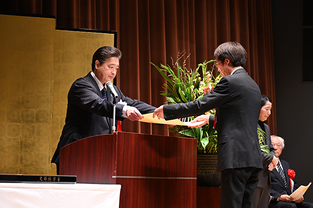 表彰式は対面とオンラインを併用する形で実施し、会場に約200名が参加し各表彰の代表者(各1名、計4名)に対して清水大臣政務官から表彰状を授与しました。