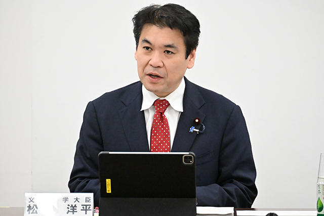 4月10日、「デジタルな形態を含む教科書の発行・採択等の指針に関する検討会議(第1回)」を開催し、松本大臣が出席しました。